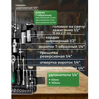 - Удобная упаковка: все предметы аккуратно размещены в компактном кейсе, что позволяет легко организовать и транспортировать инструменты.