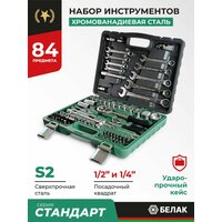 Набор 84 предмета автомобильный для ремонта выполнен из специальной комплексно-легированной стали с повышенным содержанием углерода. Прочные металлические замки и эргономичный ударопрочный кейс чемодан, делают набор головок с трещоткой более эффективным и мобильным.