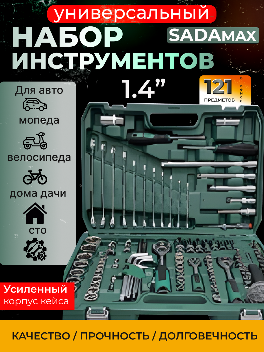 Купить Набор инструментов SADAmax «121 элемент», в кейсе, CR-V сталь с доставкой по всей России.