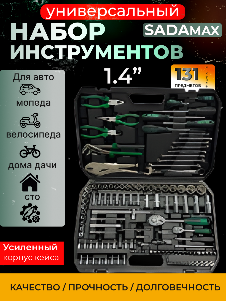 Набор инструментов, для автомобиля, SADAmax, 131 предмет, в кейсе: сравнение цен, характеристики, фото, актуальное наличие и цены.