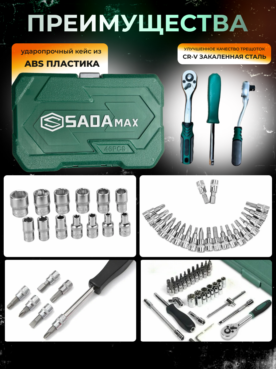 Набор инструментов, для автомобиля, SADAmax, 172 предмета, в кейсе: сравнение цен, характеристики, фото, актуальное наличие и цены.