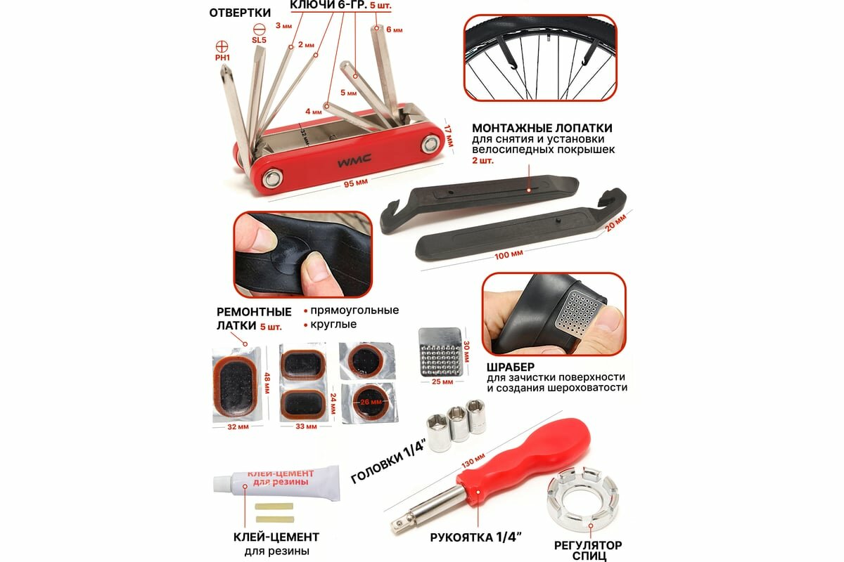Набор инструментов для обслуживания велосипеда WMC TOOLS 27 предметов + держатель фляги, в тубе WMC-2727B(49890): сравнение цен, характеристики, фото, актуальное наличие и цены.