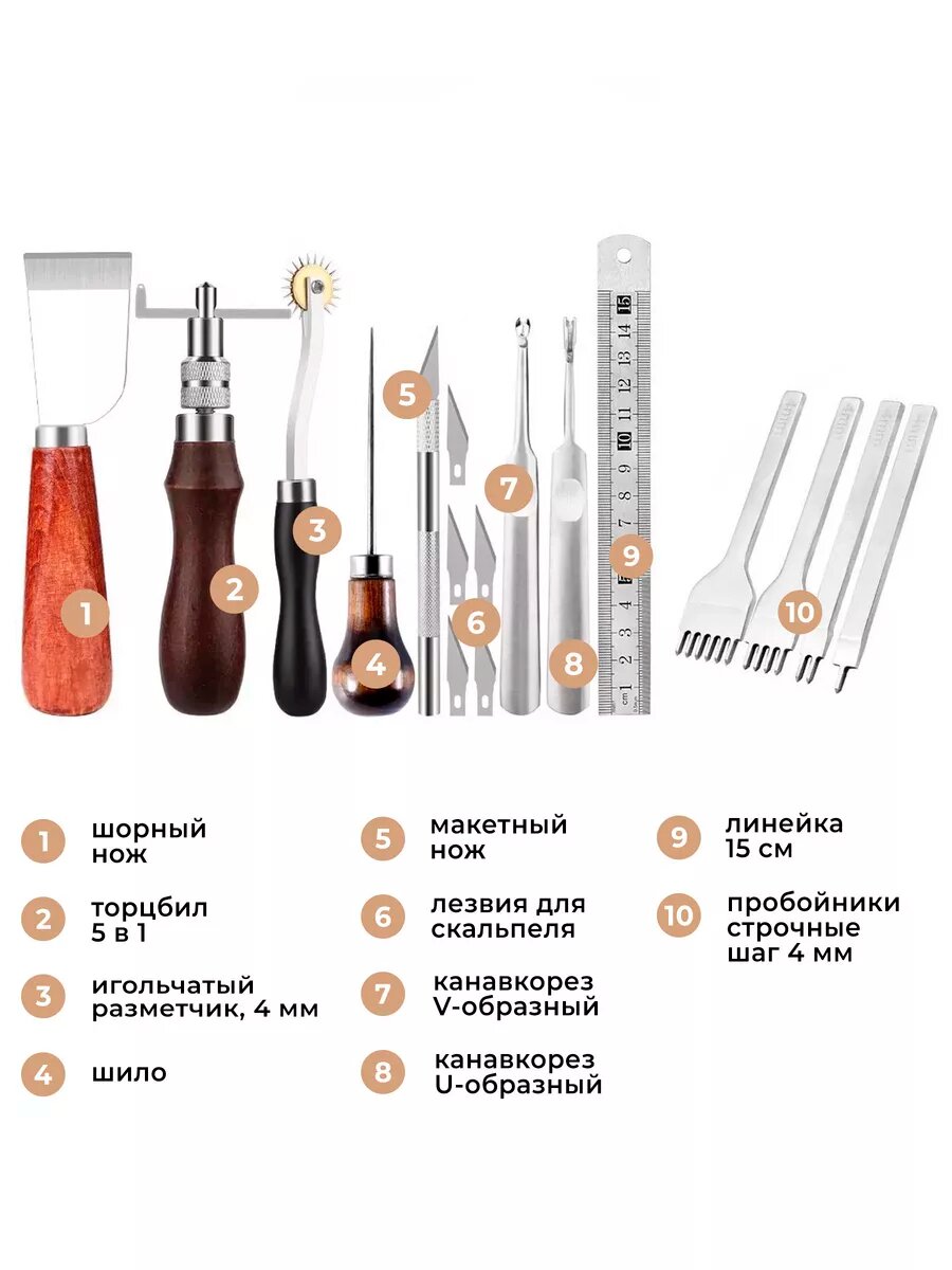 Купить Набор инструментов для работы с кожей, 19 шт. с доставкой по всей России. Набор инструментов для работы с кожей, 19 шт.: сравнение цен, характеристики, фото, актуальное наличие и цены.