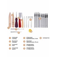 Купить Набор инструментов для работы с кожей, 29 шт. с доставкой по всей России. Набор инструментов для работы с кожей, 29 шт.: сравнение цен, характеристики, фото, актуальное наличие и цены.