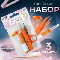Набор инструментов для шитья, 3 предмета, цвет оранжевый