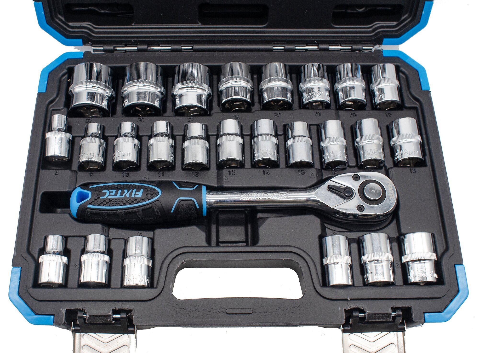 Набор головок Fixtec FHST1332, CR-V сталь, 32 шт, 1/2", с кейсом