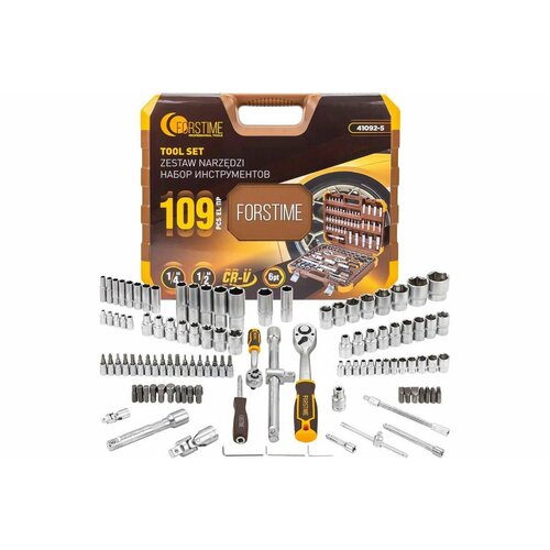 Набор инструментов FORSTIME 109 предметов, 1/4′, 1/2′, в кейсе: сравнение цен, характеристики, фото, актуальное наличие и цены.