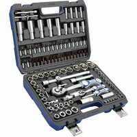 | Дополнительная информация | Комплектация ТОРЦЕВЫЕ ГОЛОВКИ И ПРИНАДЛЕЖНОСТИ 1/2" 17 шт. - Головки 6-гранные: 10, 11, 12, 13, 14, 15, 16, 17, 18, 19, 20, 21, 22, 24, 27, 30, 32 мм 5 шт. - Головки 6-гранные удлиненные: 14, 15, 17, 19, 22 мм 8 шт. - Головки Е-стандарт: E10, E11, E12, E14, E16, E18, E20, E24 2 шт. - Головки 6-гранные свечные: 16, 21 мм 2 шт. - Удлинители: 125, 250 мм 1 шт. - Трещотка: 258 мм, 72 зубца 1 шт. - Кардан: 70 мм 1 шт. - Скользящий адаптер: 3/8" > 1/2" 1 шт. - Адаптер для бит 6-гранный: 5/16" (8 мм) ТОРЦЕВЫЕ ГОЛОВКИ И ПРИНАДЛЕЖНОСТИ 1/4" 13 шт. - Головки 6-гранные: 4, 4.5, 5, 5.5, 6, 7, 8, 9, 10, 11, 12, 13, 14 мм 8 шт. - Головки 6-гранные удлиненные: 6, 7, 8, 9, 10, 11, 12, 13 мм 5 шт. - Головки Е-стандарт: E4, E5, E6, E7, E8 2 шт. - Удлинители: 56, 100 мм 1 шт. - Трещотка: 158 мм, 72 зубца 1 шт. - Вороток Т-образный: 110 мм 1 шт. - Отвертка-вороток: 150 мм 1 шт. - Кардан: 38 мм ГОЛОВКИ СО ВСТАВКАМИ 1/4" 3 шт. - SLOTTED: SL4, SL5.5, SL7 2 шт. - PHILLIPS: PH1, PH2 2 шт. - POZIDRIVE: PZ1, PZ2 4 шт. - HEX: H3, H4, H5, H6 6 шт. - TORX: T8, T10, T15, T20, T25, T27, T30 БИТЫ 5/16" 3 шт. - SLOTTED: SL8, SL10, SL12 2 шт. - PHILLIPS: PH3, PH4 2 шт. - POZIDRIVE: PZ3, PZ4 5 шт. - HEX: H7, H8, H10, H12, H14 5 шт. - TORX: T40, T45, T50, T55, T60 КЛЮЧИ 3 шт. - Ключи шестигранные: 1.5, 2, 2.5 мм ПРОЧИЕ ИНСТРУМЕНТЫ 1 шт. - Ударопрочный кейс: 390x290x88 |
