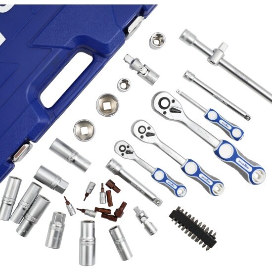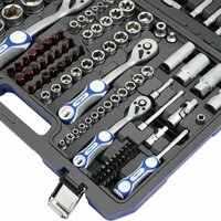 | Дополнительная информация | ТОРЦЕВЫЕ ГОЛОВКИ И ПРИНАДЛЕЖНОСТИ 1/2" 17 шт. - Головки 6-гранные:10, 11, 12, 13, 14, 15, 16, 17, 18, 19, 20, 21, 22, 24, 27, 30, 32 мм 5 шт. - Головки 6-гранные удлиненные:16, 17, 18, 19, 22 мм 2 шт. - Головки Е-стандарт:E20, E24 2 шт. - Головки 6-гранные свечные:16, 21 мм 2 шт. - Удлинители:125, 250 мм 1 шт. - Трещотка:250 мм, 72 зубца 1 шт. - Кардан:70 мм 1 шт. - Скользящий адаптер:1/2" x 3/8" 1 шт. - Адаптер для бит 6-гранный:5/16" (8 мм) ТОРЦЕВЫЕ ГОЛОВКИ И ПРИНАДЛЕЖНОСТИ 3/8" 10 шт. - Головки 6-гранные:10, 11, 12, 13, 14, 15, 16, 17, 18, 19 мм 6 шт. - Головки 6-гранные удлиненные:10, 11, 12, 13, 14, 15 мм 1 шт. - Головки 6-гранные свечные:21 мм 6 шт. - Головки Е-стандарт:E10, E11, E12, E14, E16, E18 1 шт. - Удлинитель:150 мм 1 шт. - Трещотка:205 мм, 72 зубца 1 шт. - Кардан:55 мм 1 шт. - Переходник: 1/4" x 3/8" ТОРЦЕВЫЕ ГОЛОВКИ И ПРИНАДЛЕЖНОСТИ 1/4" 13 шт. - Головки 6-гранные:4, 4.5, 5, 5.5, 6, 7, 8, 9, 10, 11, 12, 13, 14, мм 7 шт. - Головки 6-гранные удлиненные:4, 5, 6, 7, 8, 9, 10 мм 5 шт. - Головки Е-стандарт:E4, E5, E6, E7, E8 2 шт. - Удлинители:50, 100 мм 1 шт. - Трещотка:150 мм, 72 зубца 1 шт. - Вороток Т-образный:110 мм 1 шт. - Отвертка-вороток:150 мм 1 шт. - Кардан:35 мм 1 шт. - Держатель бит:25 мм ГОЛОВКИ СО ВСТАВКАМИ 1/4" 3 шт. - SLOTTED:SL4, SL5.5, SL7 3 шт. - PHILLIPS:PH1, PH2, PH3 3 шт. - POZIDRIVE:PZ1, PZ2, PZ3 5 шт. - HEX:H1, H3, H4, H5, H6 8 шт. - TORX:T8, T9, T10, T15, T20, T25, T27, T30 8 шт. - TORX с отверстием:T8, T9, T10, T15, T20, T25, T27, T30 БИТЫ 5/16" 3 шт. - SLOTTED:SL8, SL10, SL12 2 шт. - PHILLIPS:PH3, PH4 2 шт. - POZIDRIVE:PZ3, PZ4 5 шт. - HEX:H7, H8, H10, H12, H14 6 шт. - TORX:T40, T45, T50, T55, T60, T70 6 шт. - TORX с отверстием:T40, T45, T50, T55, T60, T70 БИТЫ 1/4" 3 шт. - SLOTTED:SL4, SL5.5, SL7 3 шт. - PHILLIPS:PH1, PH2, PH3 3 шт. - POZIDRIVE:PZ1, PZ2, PZ3 4 шт. - HEX:H3, H4, H5, H6 7 шт. - TORX:T10, T15, T20, T25, T27, T30, T40 КЛЮЧИ 7 шт. - Ключи шестигранные с шаром:1.5, 2, 2.5, 3, 4, 5, 6 мм ПРОЧИЕ ИНСТРУМЕНТЫ Ударопрочный кейс: 480х340х100 |
