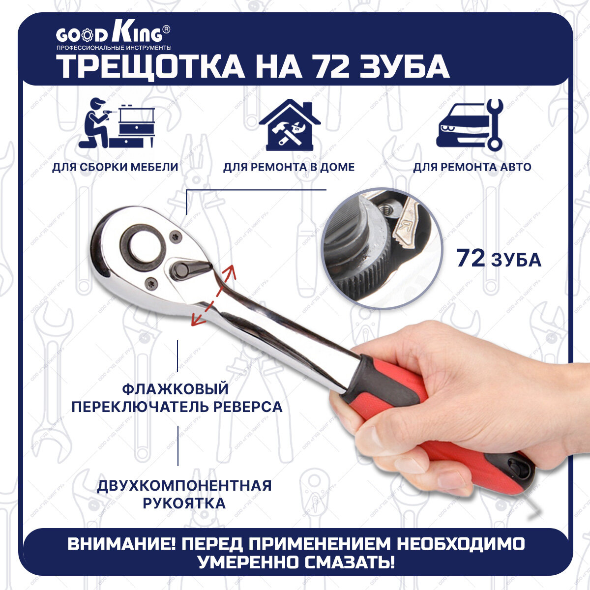 | Головки торцевые подробно | удлиненная торцевая головка - 9 шт (1/2 - 13, 14, 17, 19, 24, 27 мм; 1/4 - 8, 10, 12 мм) головки E-СТАНДАРТ - 11 шт (1/2 - 10, 11, 12, 14, 16, 18 мм; 1/4 - 4, 5, 6, 7, 8 мм) торцевые головки - 21 шт (1/2 - 13, 14, 15, 16, 17, 18, 19, 20, 21, 22, 23, 24, 27, 30 мм; 1/4 - 6, 7, 8, 9, 10, 11, 12 мм) |