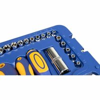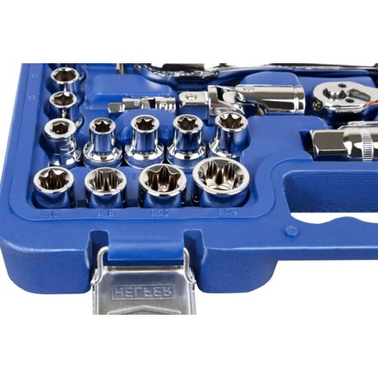 | Головки торцевые подробно | 1/4" (6-гр.): 4, 4.5, 5, 5.5, 6, 7, 8, 9, 10, 11, 12, 13, 14 мм; длинные 1/4": 6, 7, 8, 9, 10, 11, 12, 13 мм; Torx 1/4": E4, E5, E6, E7, E8; удлинитель 1/4": 50, 100 мм; карданный шарнир 1/4"; трещотка 1/4": 45 зубов; вороток т-образный 1/4": 110 мм; с битами 1/4": T8, T10, T15, T20, T25, T27, T30, H3, H4, H5, H6, SL4, SL5.5, SL6.5, PH1, PH2, PZ1, PZ2; 1/2" (6-гр.): 10, 11, 12, 13, 14, 15, 16, 17, 18, 19, 20, 21, 22, 24, 27, 30, 32 мм; длинные 1/2": 14, 15, 17, 19, 22 мм; Torx 1/2": E10, E12, E14, E16, E18, E20, E22, E24; свечные 1/2": 16, 21 мм; карданный шарнир 1/2"; удлинитель 1/2": 125, 250 мм; трещотка 1/2": 45 зубцов |