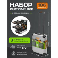 Профессиональный набор инструментов из 186 предметов в кейсе от бренда ISMA TOOLS - универсальный и практичный набор для ремонта автомобилей, дома и дачи.Набор поставляется в прочном металлическом кейсе с металлическими защелками, что обеспечивает удобное хранение и транспортировку инструментов.