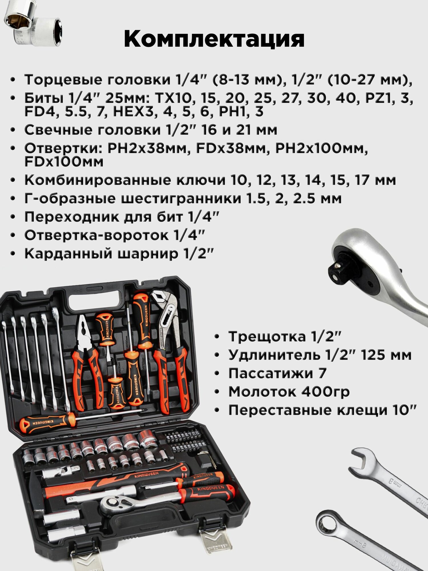 Купить Набор инструментов KINGQUEEN, 58 предметов, 72 зуба с доставкой по всей России. Набор инструментов KINGQUEEN, 58 предметов, 72 зуба: сравнение цен, характеристики, фото, актуальное наличие и цены.