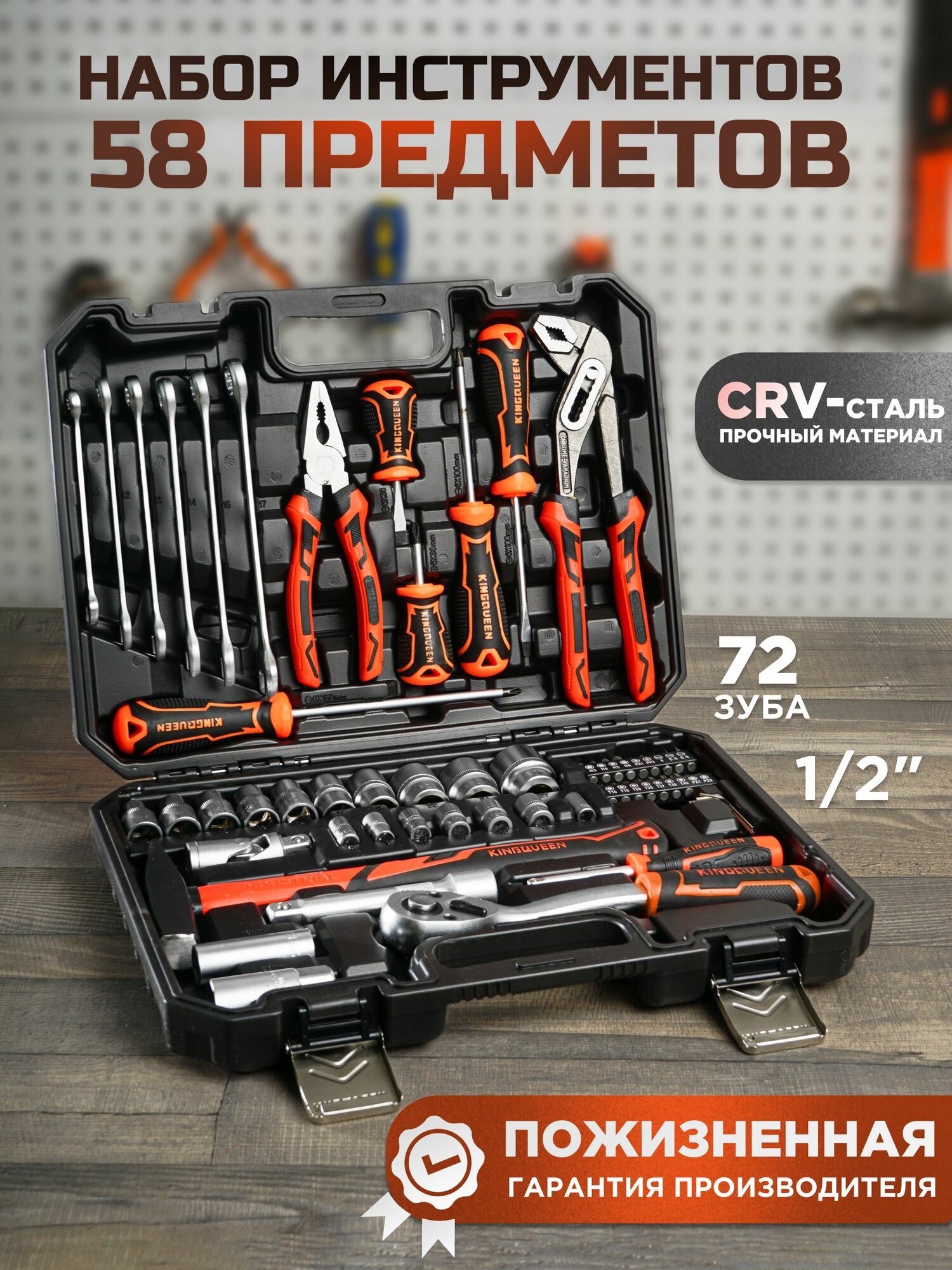 Набор инструментов KINGQUEEN, 58 предметов, 72 зуба
