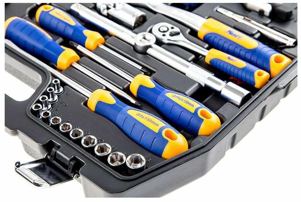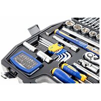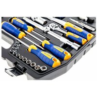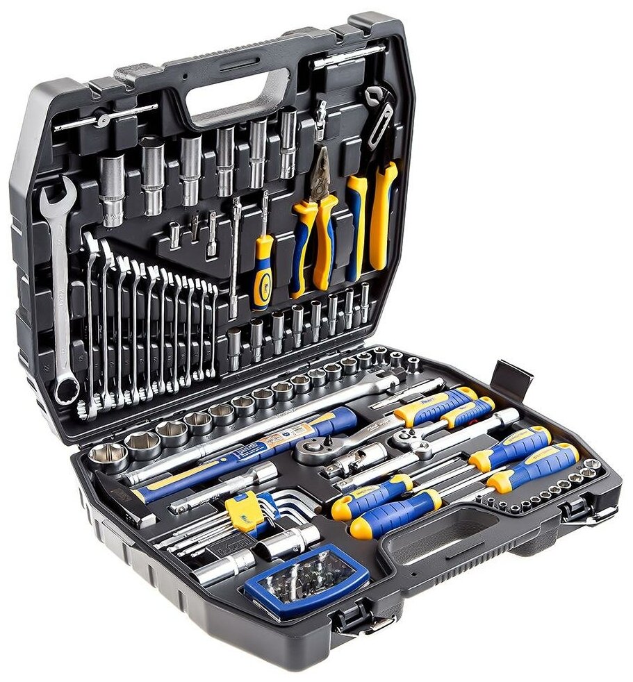 | Головки торцевые подробно | 1/4": 4, 4.5, 5, 5.5, 6, 7, 8, 9, 10, 11, 12, 13 мм; длинные 1/4": 6, 7, 8, 9, 10, 11, 12, 13 мм; удлинитель 1/4": 50, 100 мм; гибкий удлинитель 1/4": 125 мм; карданный шарнир 1/4"; трещетка 1/4": 72 зуба; 1/2": 14, 15, 16, 17, 18, 19, 20, 22, 24, 27, 30, 32 мм; длинные 1/2": 14, 15, 17, 19, 21, 22 мм; свечные 1/2": 16, 21 мм; карданный шарнир 1/2"; удлинитель 1/2": 125, 250 мм; Torx 1/2": E10, E12, E14, E16 |