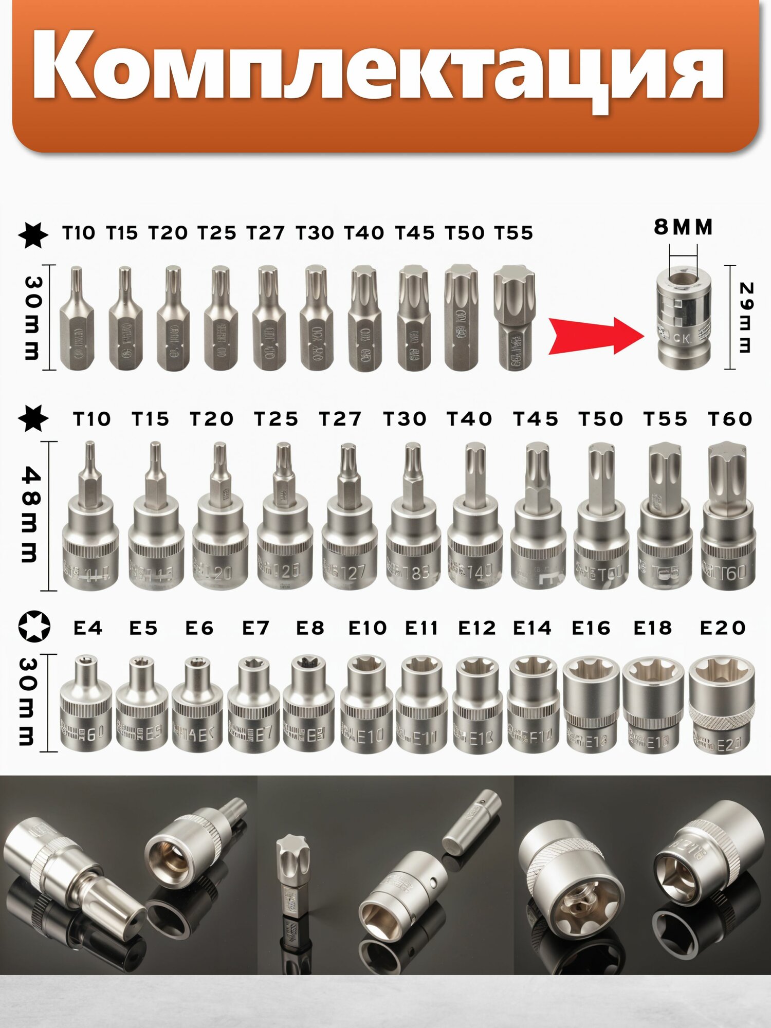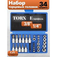 Набор инструментов / Набор головок E-Torx 34 предмета, гнездо, штекер, биты E-torx, 1/4′, 3/8′: сравнение цен, характеристики, фото, актуальное наличие и цены.
