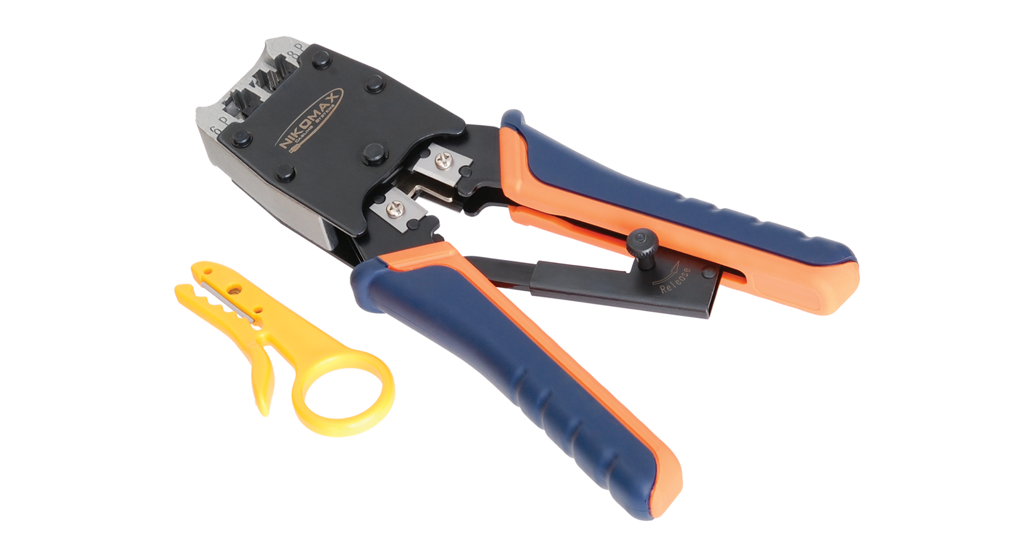 Обжимной инструмент NMC-500R предназначен для обжима разъемов типа RJ45/8P8C, RJ12/6P6C и RJ11/6P4C. Он оборудован устройством для зачистки плоского кабеля и поставляется с отдельным устройством для зачистки кабелей круглого сечения. Инструмент обеспечивает "торцевой" обжим, что гарантирует высокое качество соединения.
