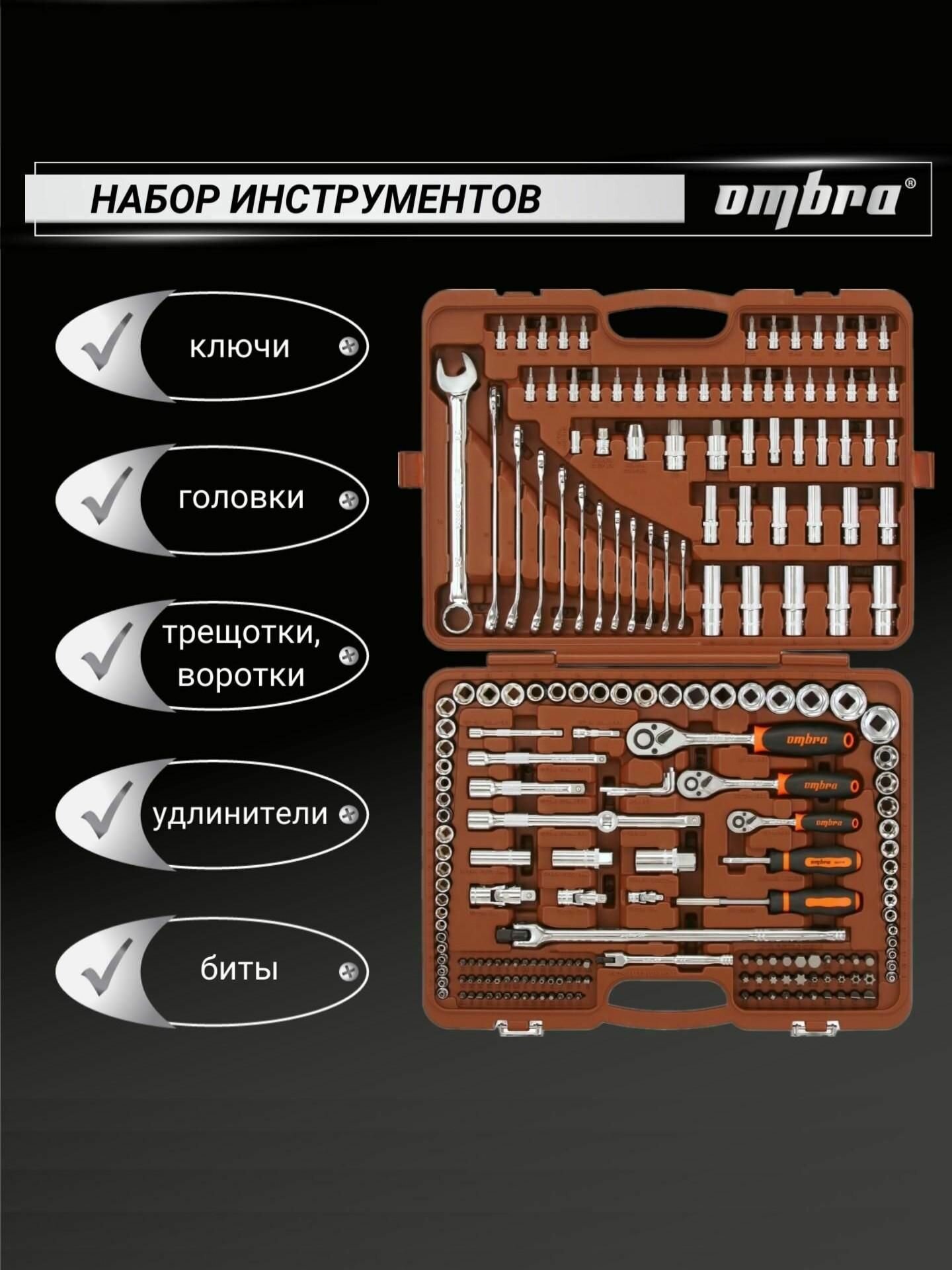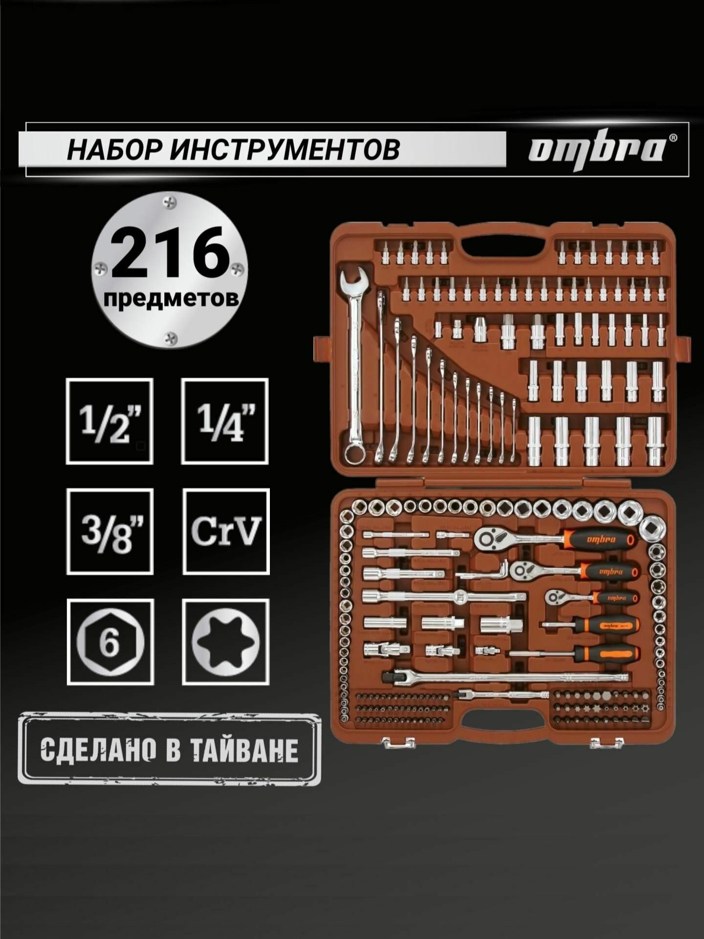 Набор инструментов Ombra 216 предметов, для автомобиля и дома 1/4″, 3/8″, 1/2″DR, OMT216S: сравнение цен, характеристики, фото, актуальное наличие и цены.