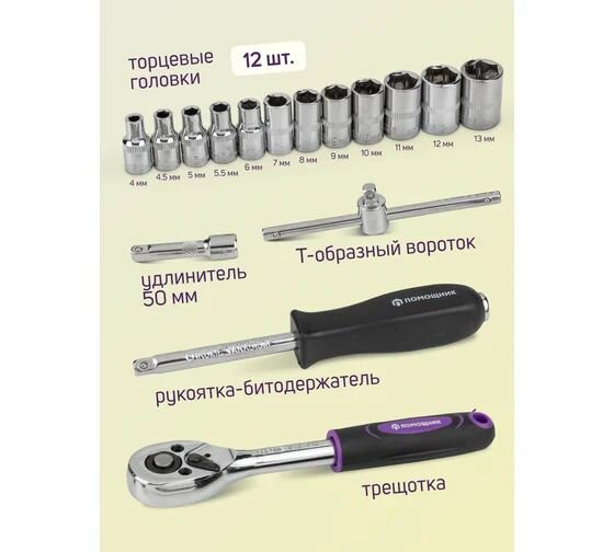 Купить Набор инструментов Помощник 17пр. 1/4″ (6гр.) с доставкой по всей России. Набор инструментов Помощник 17пр. 1/4″ (6гр.): сравнение цен, характеристики, фото, актуальное наличие и цены.