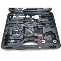 подробная комплектация: ключи Torx T20/T25/T30 (YC-T20/YC-T25/YC-T30), спицевой ключ Spoke wrench (YC-8F), съёмник заглушки шатунов (YC-27),ключ для установки бонок (YC-271), плоские отвертки 3 мм (YC-612), 5 мм/Phillips отвертка (YC-611), торцевой шестигранник 8 мм (YC-812LE), монтажки для бортировки колеса (YC-305D), шестигранники 2/2.5/3/4/5/6 мм (YC-613), ключ для снятия чашек кареток Hollowtech, BB-9000 и BBR603 (YC-307BB), хлыст (YC-515), съёмник кассеты (YC-126-1A), съёмник каретки с внешними чашками (YC-26BB-1A), узкогубцы для снятия замка цепи (YC-335CO), выжимка цепи (YC-336), конусные ключи 13/14/15/16/17/18 мм (YC-257ABC), съёмник шатунов (YC-215CB), фиксатор цепи (YC-207)