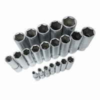 | Головки торцевые подробно | 1/2'': 10, 11, 12, 13, 14, 15, 17, 19, 20, 21, 22, 24, 27, 30, 32 мм; 3/8": 10, 11, 12, 13, 14, 15, 16 , 17, 18, 19 мм; 1/4": 4, 4.5, 5, 5.5, 6, 7, 8, 9, 10, 11, 12, 13, 14 мм; 1/2" глубокие : 16, 17, 18, 19, 22 мм; 3/8" глубокие: 10, 11, 12, 13, 14, 15 мм; 1/4" глубокие: 4, 5, 6, 7, 8, 9, 10 мм; TORX, 1/2": E20, E22, E24; TORX, 3/8": E10, E11, E12, E14, E16, E18; TORX, 1/4": E4, E5, E6, E7; E8; свечная 1/2": 16, 21 мм; вечная 3/8"DR: 18 мм; торцевые головки со вставками битами: TORX, 1/2”: T55, T60; Sl, 1/4”: 6, 6.5, 8 мм; PH1/4”: PH3, PH4; PZ 1/4”: PZ3, PZ4; TORX1/4”: T25, T27, T30, T35, 2xT40, T45, T50; TORX с отверстием1/4”: T27, T30, T35, T40, T45, T50; HEX 1/4”: 5.5, 6, 6.5, 7, 8 мм SPLINE, 1/4”: M5, M6, M8, M10 |