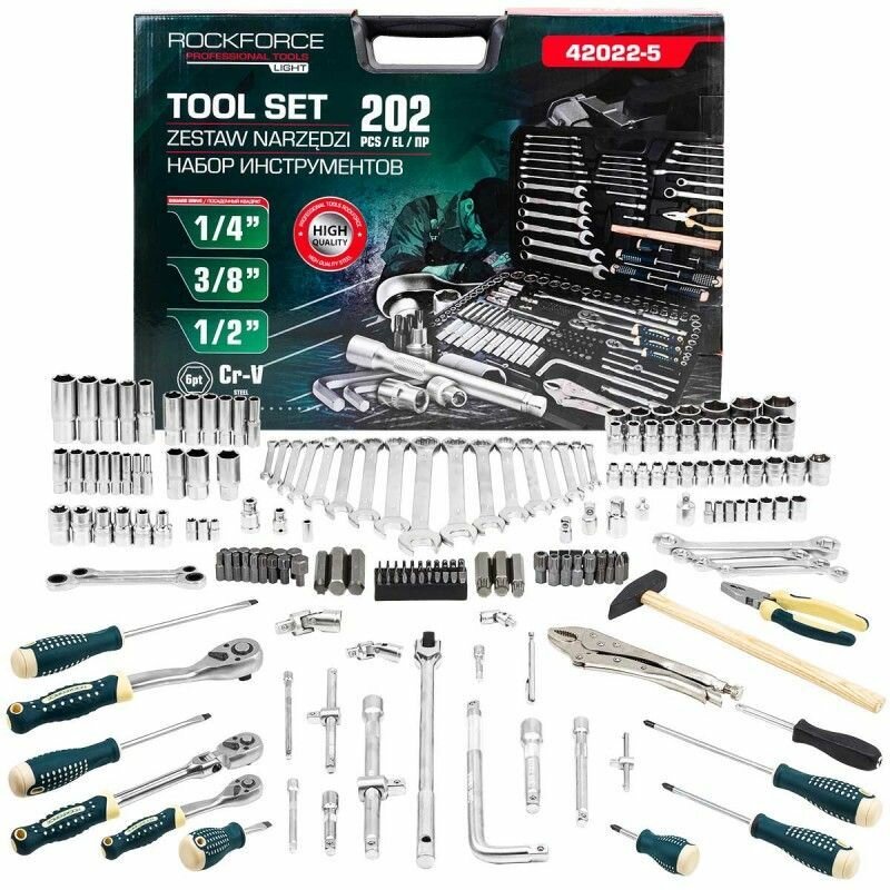Набор инструментов Rockforce 202 предмета 1/4, 3/8, 1/2 (6гр.) RF LIGHT-42022-5(61107): сравнение цен, характеристики, фото, актуальное наличие и цены.