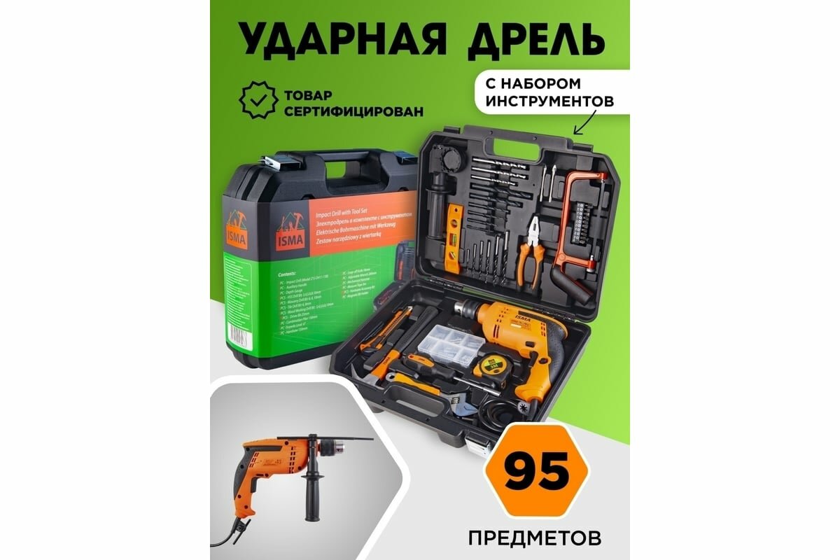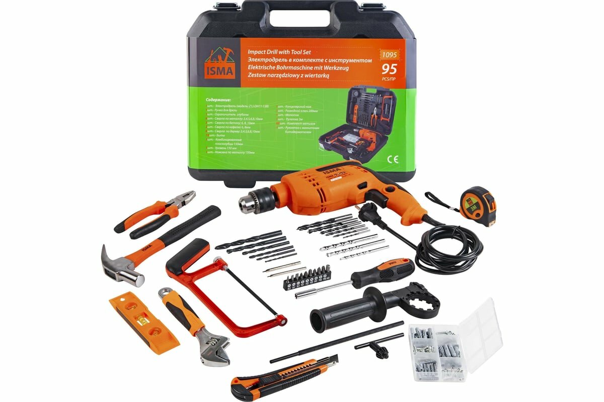 Набор инструментов с электрической дрелью ISMA 95 предметов 220 В,750 Вт, 0-2900 об/мин, в кейсе ISMA-1095(51106): сравнение цен, характеристики, фото, актуальное наличие и цены.