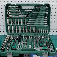 Комплектация: комбинированные ключи разных размеров; торцевые головки разных размеров; отвёртки с прямым и крестовым шлицем; биты с различными шлицами; трещотки; удлинители; карданный шарнир; вороток Т-образный; гибкий удлинитель; адаптер для бит.