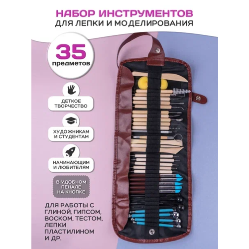 В наборе представлены инструменты для лепки и моделирования в количестве 35 шт.
