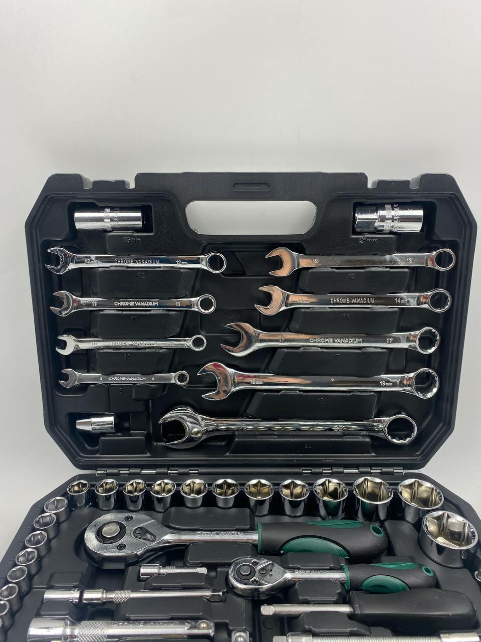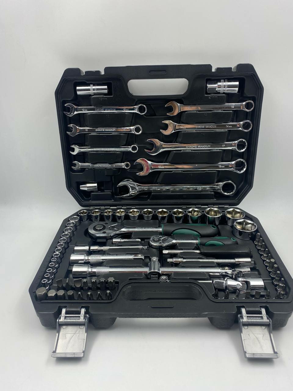 - *Всё нужное в одном месте*: Торцовые головки, рожковые ключи, трещотки, удлинители, биты и другие необходимые элементы для вашего комфорта.