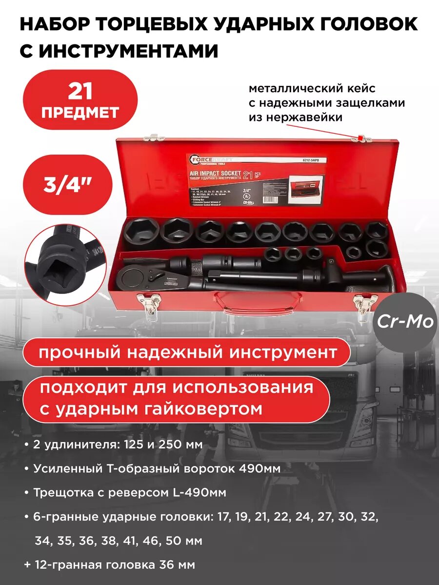 Набор инструментов ударных 21 предметов, 3/4'(12гр.) (17-50 мм), в кейсе