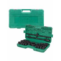 Комплектация: головки ударные 6 -гранные 3/4" (17, 19, 21, 22, 24, 27, 30, 32, 34, 35, 36, 36 (12гр), 38, 41, 46, 50 мм.), головки ударные 6 -гранные 1" (55,60,65 мм.) трещотка 3/4" 500 мм, адаптер для головок, вороток Т-образный 490 мм, удлинитель под вороток, вороток Г-образный, удлинитель 200 мм, кейс.