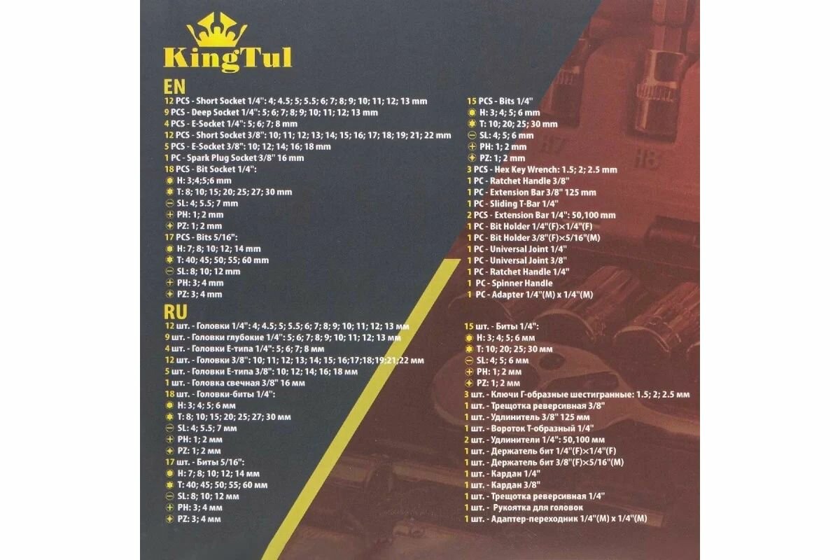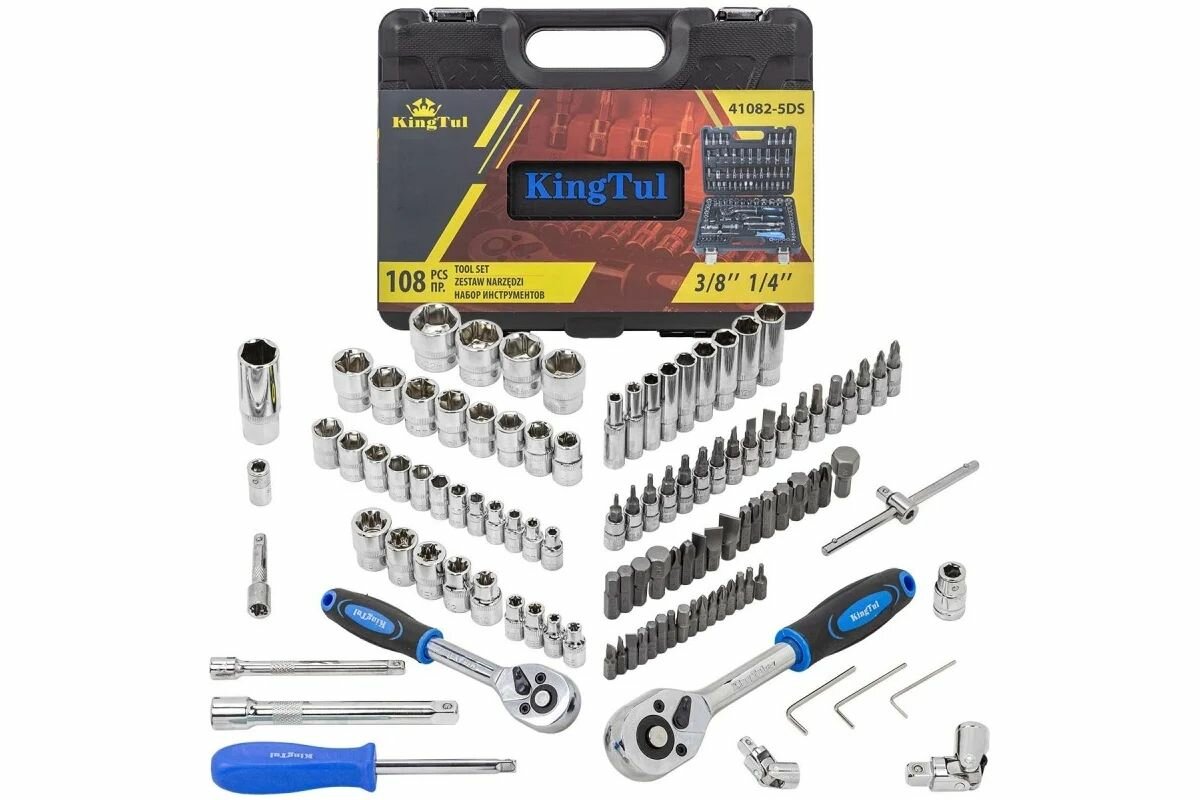 Профессиональный набор инструментов KingTul из 108 предметов в кейсе - удачный выбор для выполнения монтажных, слесарных и ремонтных работ.