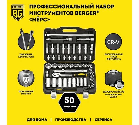 Купить Набор инструментов универсальный 50 предметов BERGER BG050-12 с доставкой по всей России. Набор инструментов универсальный 50 предметов BERGER BG050-12: сравнение цен, характеристики, фото, актуальное наличие и цены.