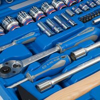Набор инструментов KING TONY 7577MR - это профессиональный набор, который включает в себя 77 предметов, включая 5 отверток, 16 бит, 8 гаечных ключей, молоток, пассатижи и другие инструменты.