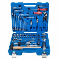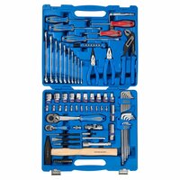 Набор включает в себя головки и принадлежности 1/2" и 1/4", а также различные инструменты, такие как ключи, отвёртки, плоскогубцы, молоток и клещи. Это позволяет использовать набор для выполнения широкого спектра задач, от простых ремонтных работ до более сложных строительных проектов.