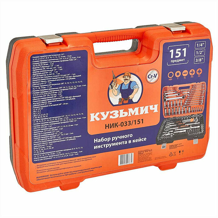 Набор инструментов Кузьмич НИК-033/151 в кейсе, хром-ванадиевая сталь, 151 предмет: сравнение цен, характеристики, фото, актуальное наличие и цены.