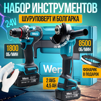 Набор инструментов Werx, аккумуляторный, 2 в 1, дрель и болгарка аккумуляторная, 2 АКБ: сравнение цен, характеристики, фото, актуальное наличие и цены.