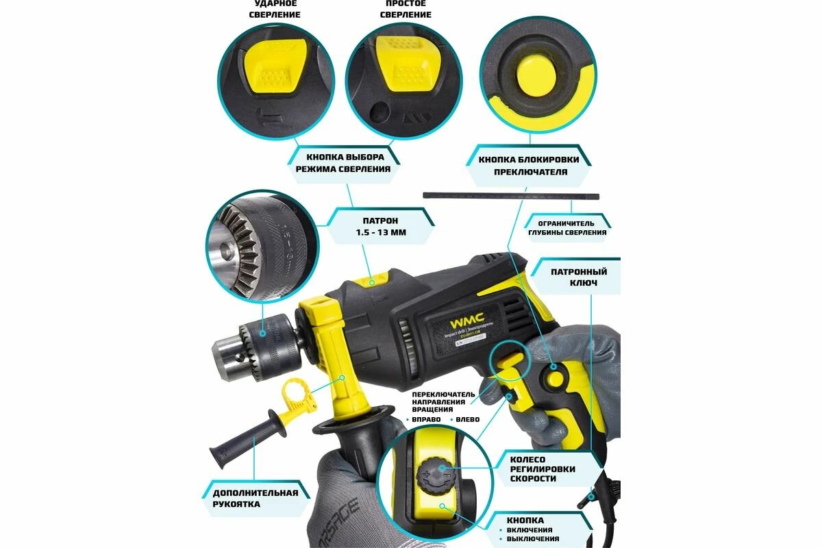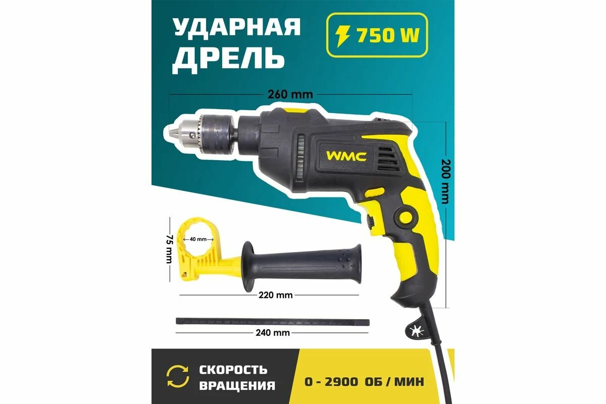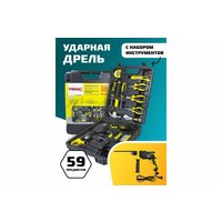 Набор инструментов WMC TOOLS с дрелью электрической,59 предметов, в кейсе