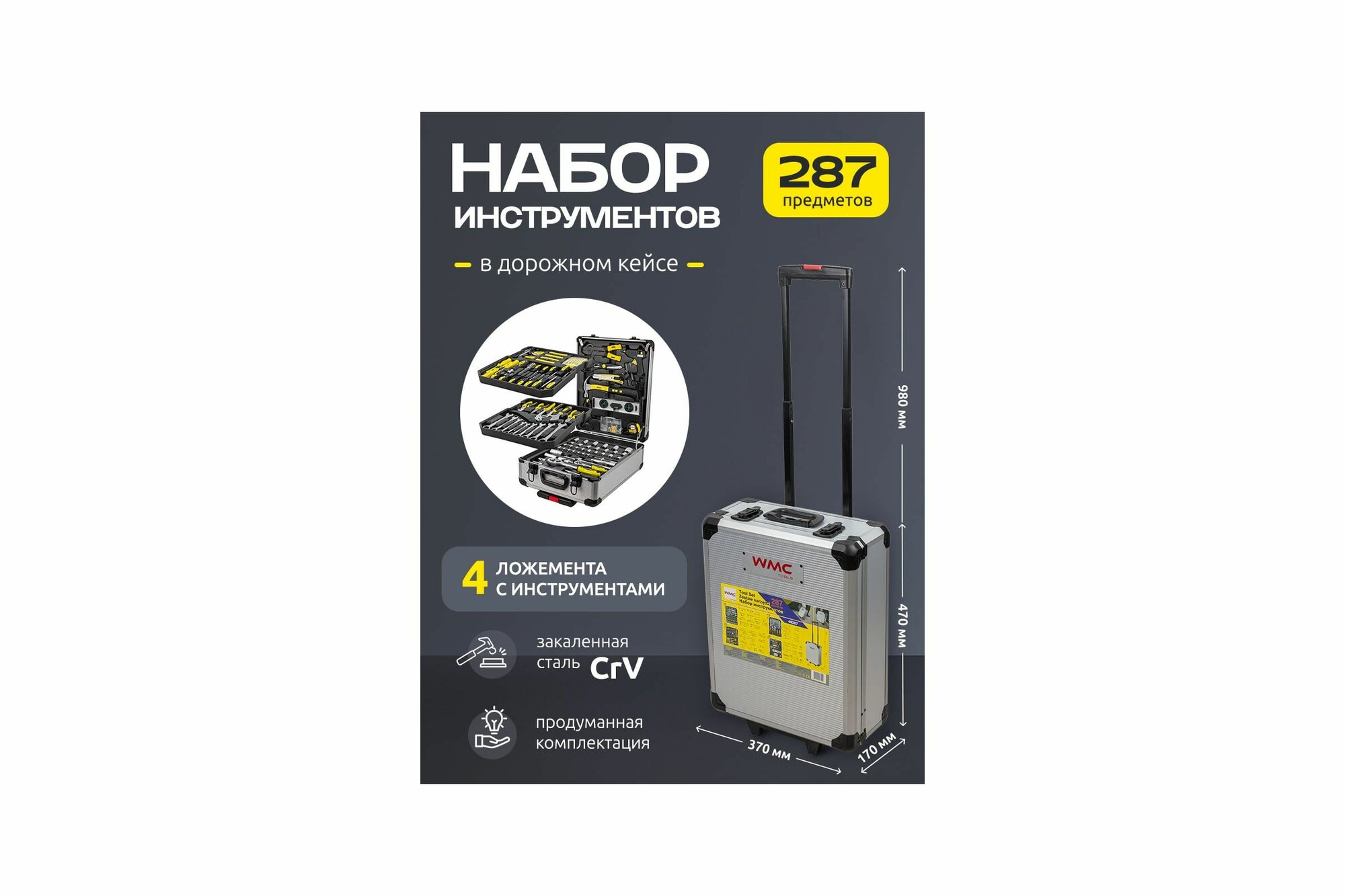 Купить Набор инструментов WMC TOOLS в алюминиевом кейсе, 287 предметов WMC-40287(57276) с доставкой по всей России. Набор инструментов WMC TOOLS в алюминиевом кейсе, 287 предметов WMC-40287(57276): сравнение цен, характеристики, фото, актуальное наличие и цены.