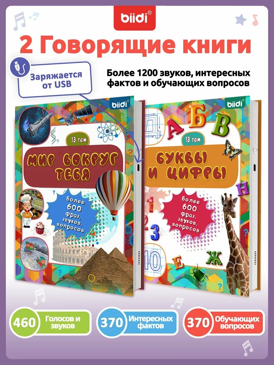 Купить Набор интерактивных говорящих книжек 2в1 «Мир вокруг тебя»и»Алфавит и цифры», biidi подарок на Новый год для детей с доставкой по всей России.