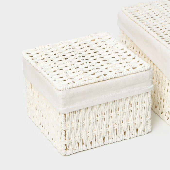 Купить Набор интерьерных корзин ручной работы с крышкой LaDоm, 2 шт, размер: 20×20×15 см, 25×25×18 см с доставкой по всей России.