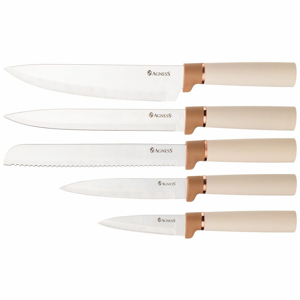 Купить Набор из 12 предметов : 5 ножей, доска, подставка, половник, ложка, лопатка, шумовка, ложка Agness с доставкой по всей России.