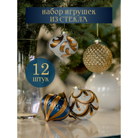 Набор из 12шт стеклянных украшений на елку «Новогодний бал»: шары новогодние