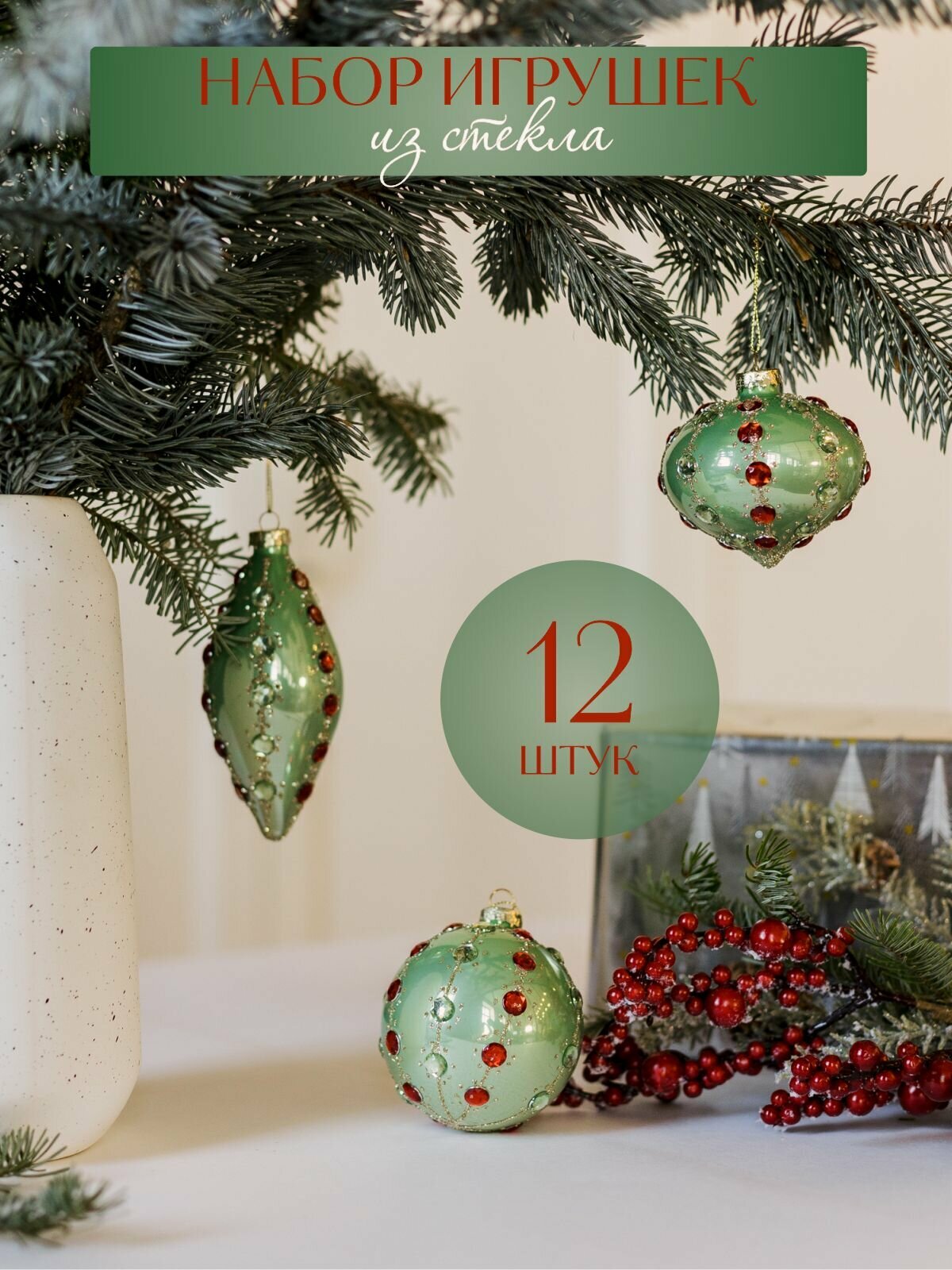 Купить Елочные игрушки новогодние украшения набор 12шт с доставкой по всей России.