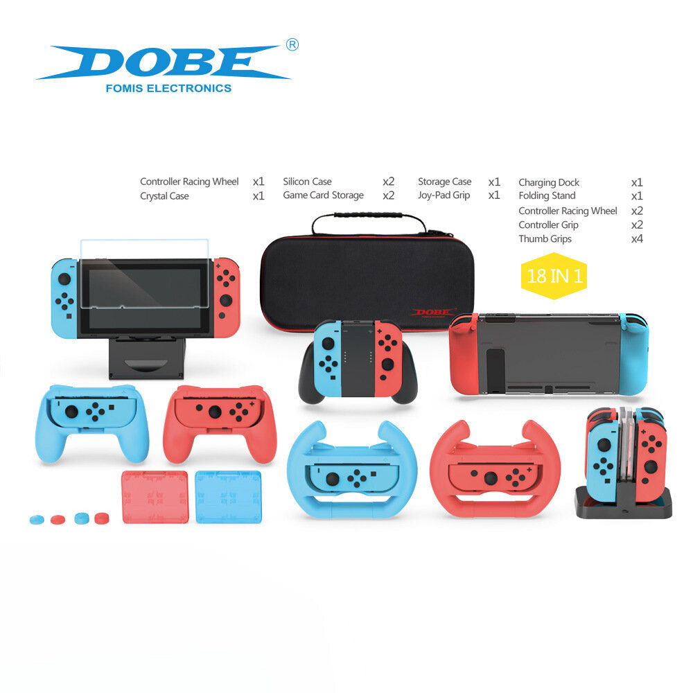 Представляем вам набор из 18-ти аксессуаров для защиты консоли Nintendo Switch - DOBE. В комплект входят все необходимые элементы, чтобы обеспечить максимальную защиту вашей консоли и аксессуаров. В наборе вы найдете чехол для хранения консоли, мелких аксессуаров и игровых картриджей, подставку для консоли, держатели для Joy-Con в форме джойстика и руля, держатель-зарядку для Joy-Con, зарядную станцию, защитное стекло для экрана, прозрачный чехол для консоли, силиконовые чехлы для Joy-Con, кейсы для хранения картриджей и силиконовые накладки для стиков. С этим набором ваша консоль будет защищена от повреждений и вы сможете наслаждаться играми в полной мере!