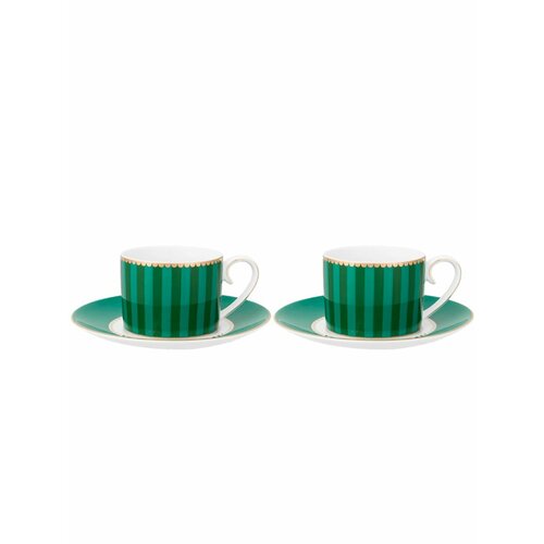 Купить Набор из 2-х чашек для эспрессо с блюдцами Love Birds Stripes Emerald-Green, 125 мл, Pip Studio с доставкой по всей России.
