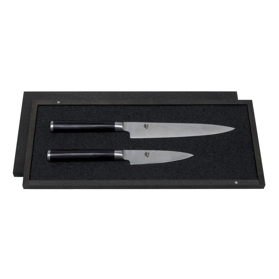 Купить Набор из 2 кухонных ножей в деревянном футляре, сталь VG-MAX в обкладках из дамаска, Kai, KAI-DMS-210 с доставкой по всей России.