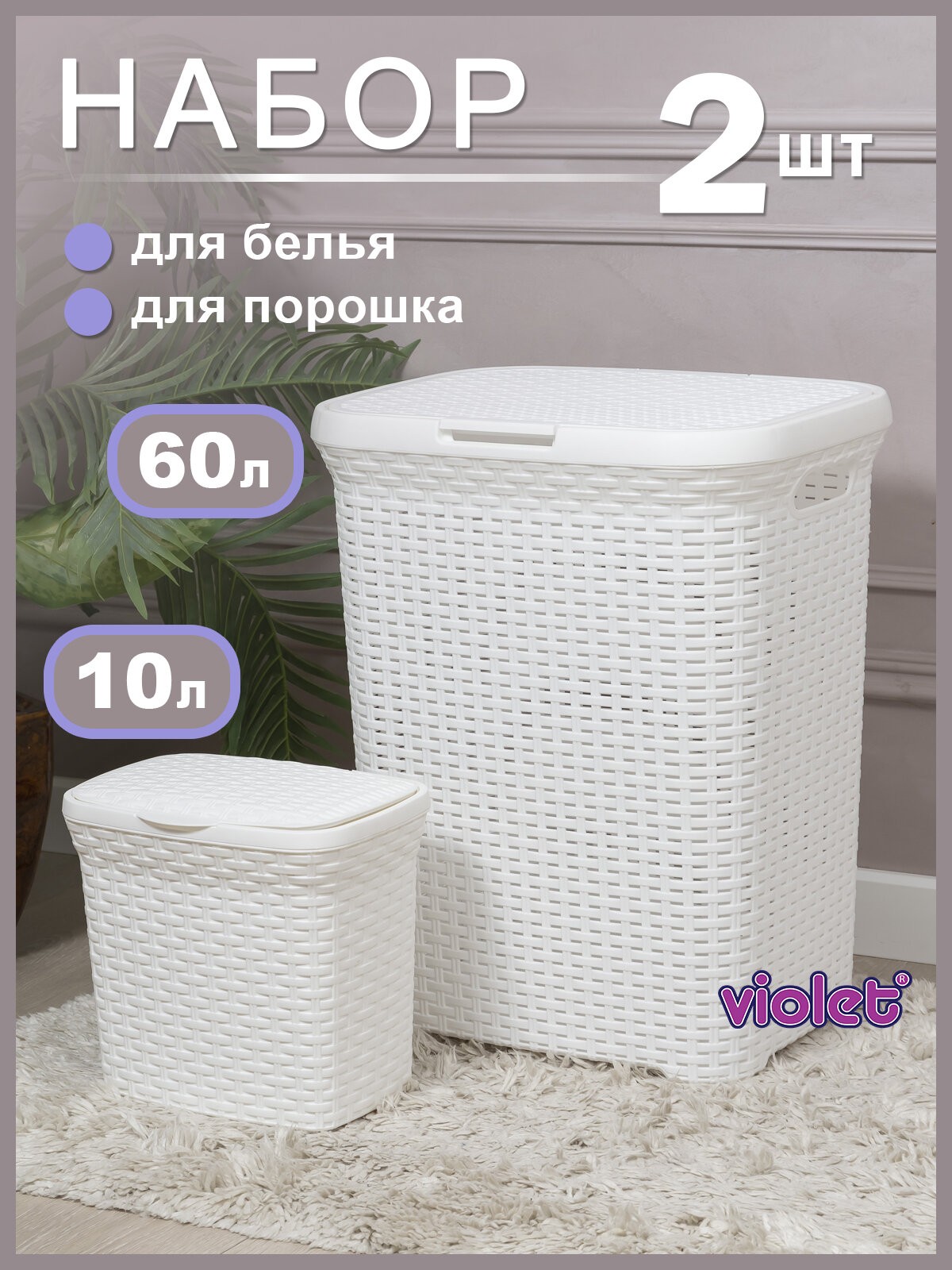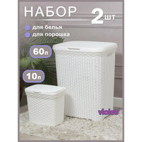 Набор из 2х предметов Ротанг: Корзина для белья с крышкой 60л, контейнер 10л для хранения мелочей или порошка, белый: сравнение цен, характеристики, фото, актуальное наличие и цены.