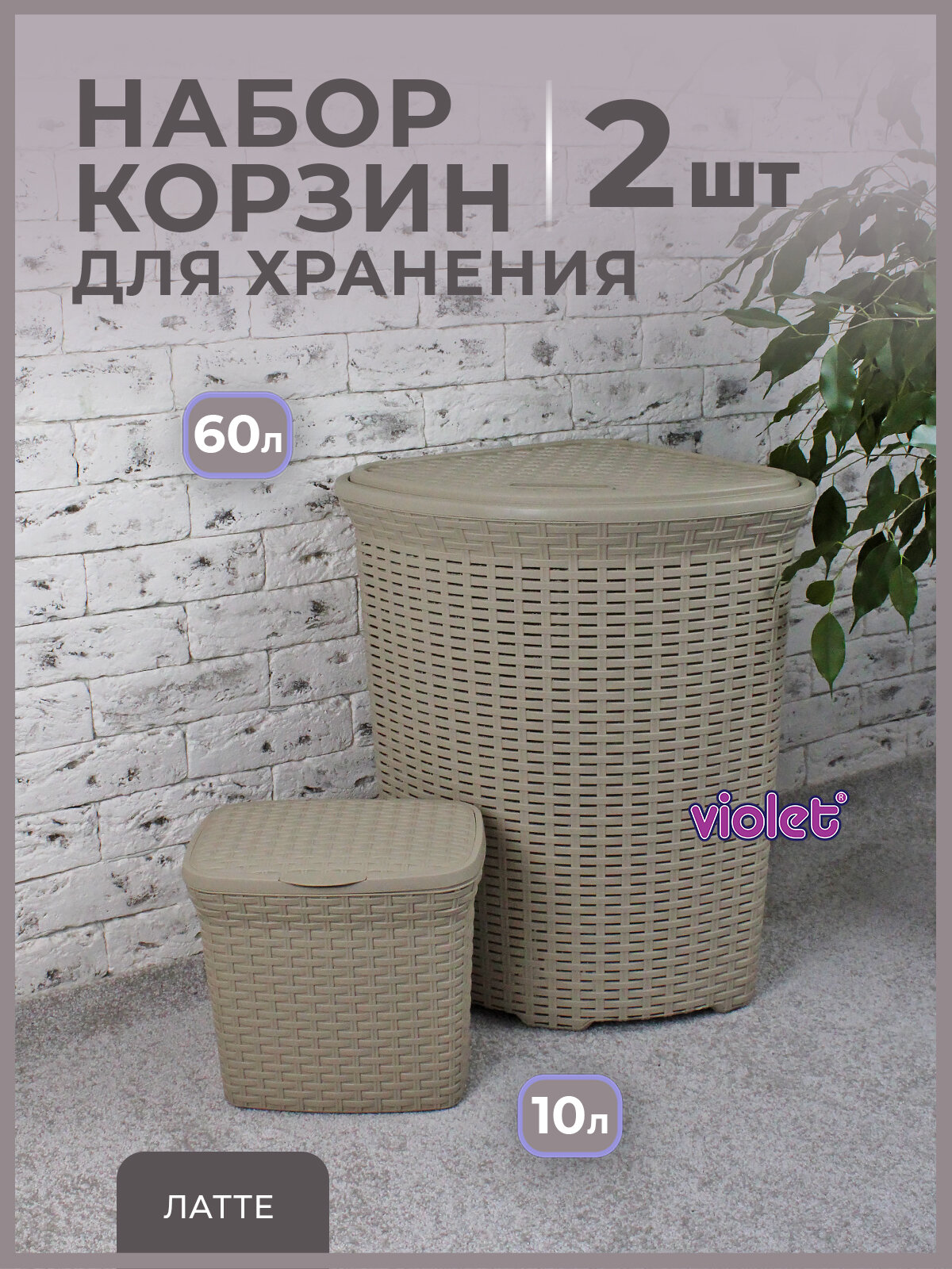 Набор из 2х корзин с крышкой Ротанг: Угловая для белья 60л, контейнер для стирального порошка 10л, цвет латте: сравнение цен, характеристики, фото, актуальное наличие и цены.